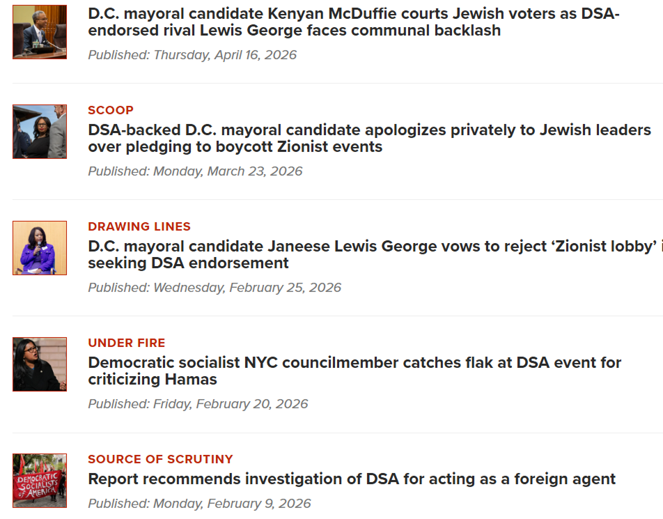 The same day, and cited in Deutch’s reporting, Halber published a melodramatic op-ed claiming that Metro DC DSA is trying to displace Jewish people from the DC metro region with its “anti-Jewish loyalty oath.” Deutch made sure to remind readers in her article that “[Halber] did not specifically mention Lewis George.” The next day, Lewis George’s largest-looming mayoral opponent, hapless Kenyan McDuffie, sensed an opportunity. He used the story to decry the idea of political opposition to Zionism, or any cause really, in a campaign email. Jewish Insider thanked him for the assist, and Deutch rushed an article out about his email that day to extend the story.